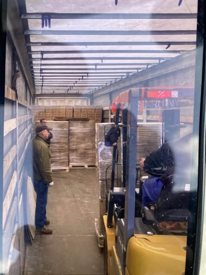 - Выгрузка товара на склад, нанесение кодов DataMatrix на каждую банку, формирование отчета в системе Честный Знак и перепалечивание на европаллеты 800 на 1200.